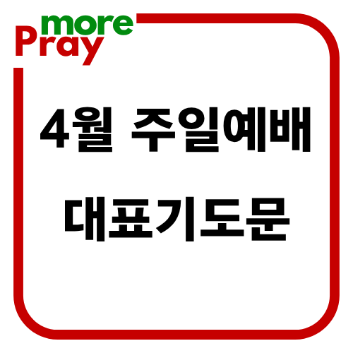 하나님 아버지, 4월 한 달을 살아가는 동안 우리의 믿음이 더욱 자라나게 하시고, 날마다 주님과 동행하는 삶이 되게 하옵소서. 계절의 변화 속에서도 변하지 않는 하나님의 사랑을 깊이 경험하게 하시고, 그 사랑을 이웃에게 전하며 살아가게 하옵소서.