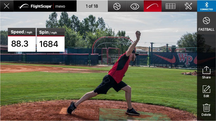 투구에 있어 가장 핵심적인 볼의 스피드, 볼의 회전 수를 측정하고 영상과 분석 데이터를 함께 제공하고 저장합니다.