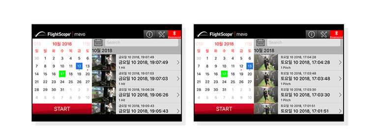 데이터를 측정하고 분석한 영상을 달력과 검색을 통해 쉽게 찾아볼 수 있습니다. 저장 기능을 통해 선수의 과거, 현재를 비교할 수 있고, 슬럼프를 극복하기 위해 좋았을 때와 좋지 않았을 때를 비교해 볼 수도 있습니다. 타격을 분석을 준비하거나 투수가 피칭 데이터를 측정하기 전에 레이더와 디바이스가 연결된 것을 알리는 음성 안내를 제공합니다. 음성 안내를 통해 디바이스가 분석할 준비가 된 것을 쉽게 알 수 있도록 제공하는 서비스입니다. 연결 상태가 양호하고 분석이 준비되면 “Ready”라고 음성 안내가 나오면 타격하거나 공을 던지면 됩니다.