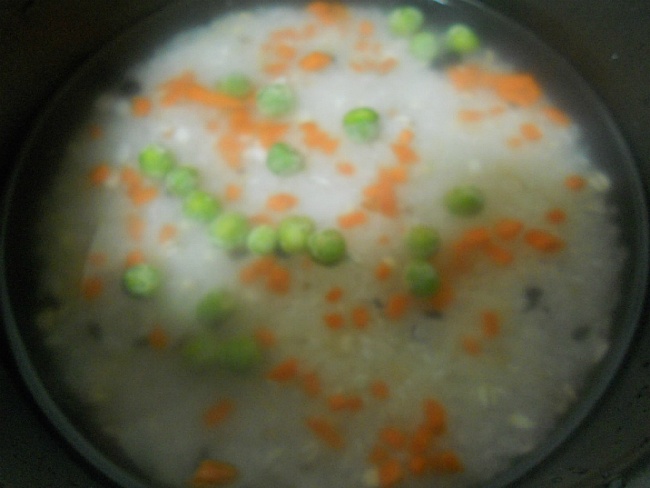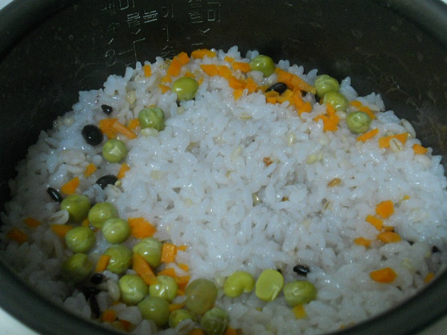 완두콩이 좀 들어갔어요... 당근을 아주 약간만 다져서 넣어요...