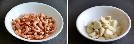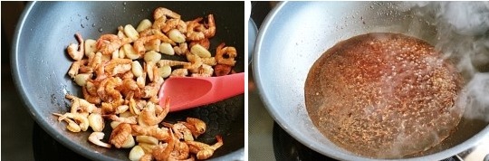 마늘이 노릇하게 구워지면 마른새우를 넣고