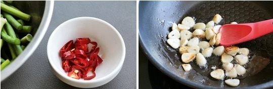 마늘쫑 250g, 홍고추 1개, 오일 1큰술,