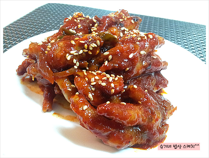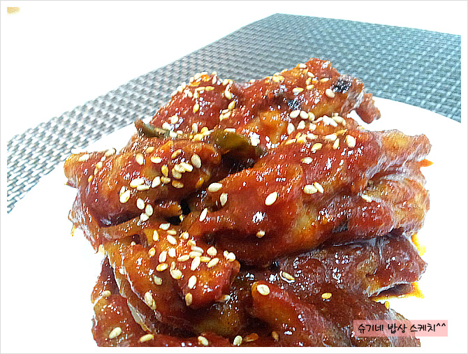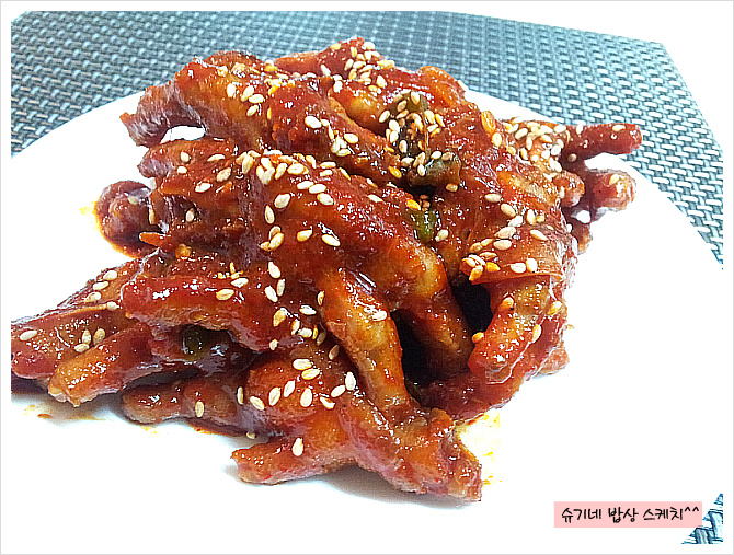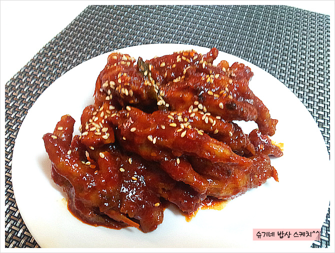 닭발 자체에 기름기가 많으므로 참기름이나 들기름은 넣지 않습니다.