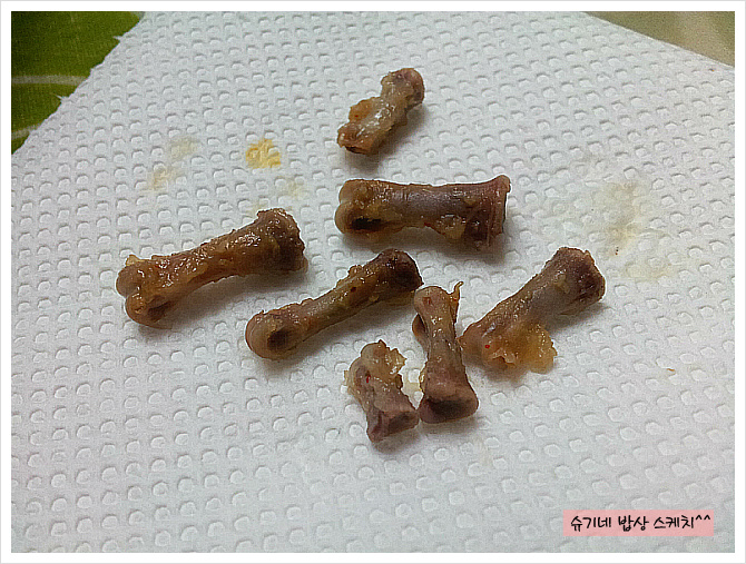 티슈에 고추가루 안묻게해라, 작은뼈가 큰뼈랑 비교되게 함께 찍어야한다,,,