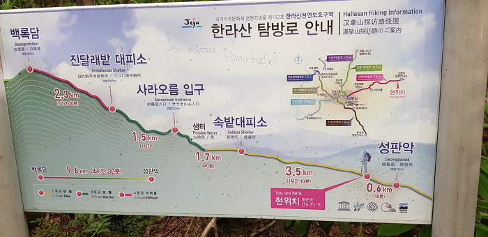 부지런히 네려와 성판악 주차장끼지 도착하는데 걸린시간은 10시간정도 걸린 것 같습니다