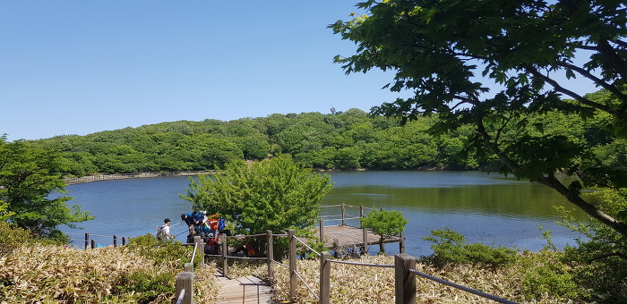 오름분화구에 물이 고여 습원을 이루는 산정호수로 둘레는 250m이며 직경은 80~ 100m입니다