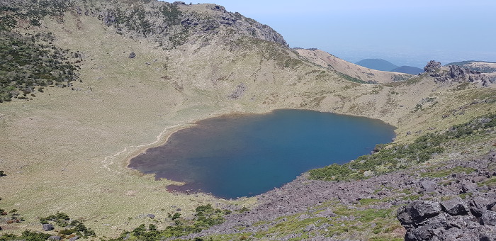 백록담은 한국에서 가장 높은 산정화구(1950m)로 원지형이 잘 보존되어있는 아름다운 명승지입니다