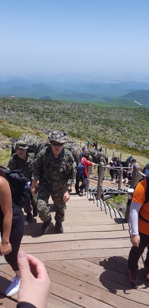 군인들이 한라산까지 오르는 도보훈련을 하는듯