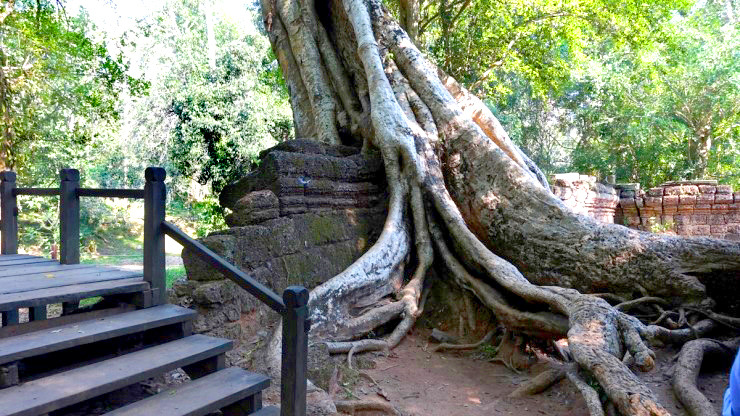 타프롬 사원에는 수도승, 일반인 등 6천 명 정도 살았다고 전해집니다.  화려했던 사원에 사람이 떠나고 400년 넘게 열대 밀림이 주인이 되다 보니 이렇게 변모하였습니다.