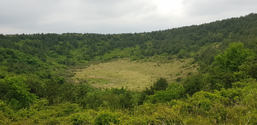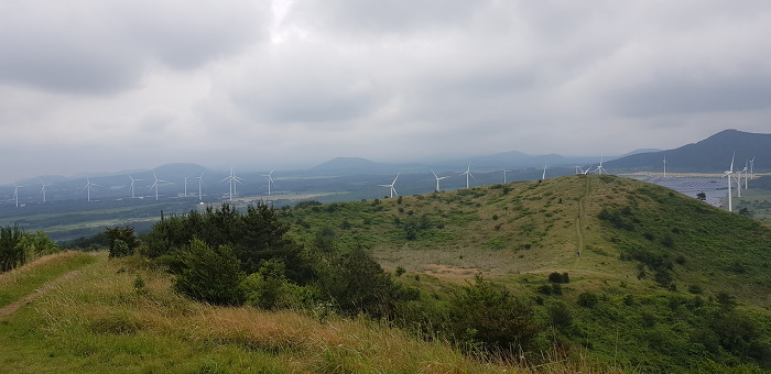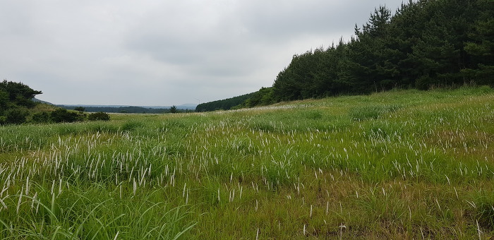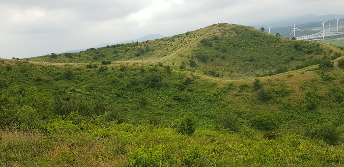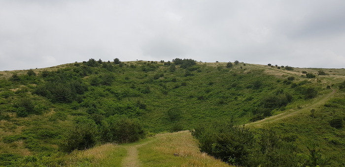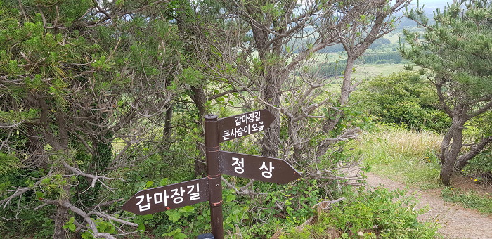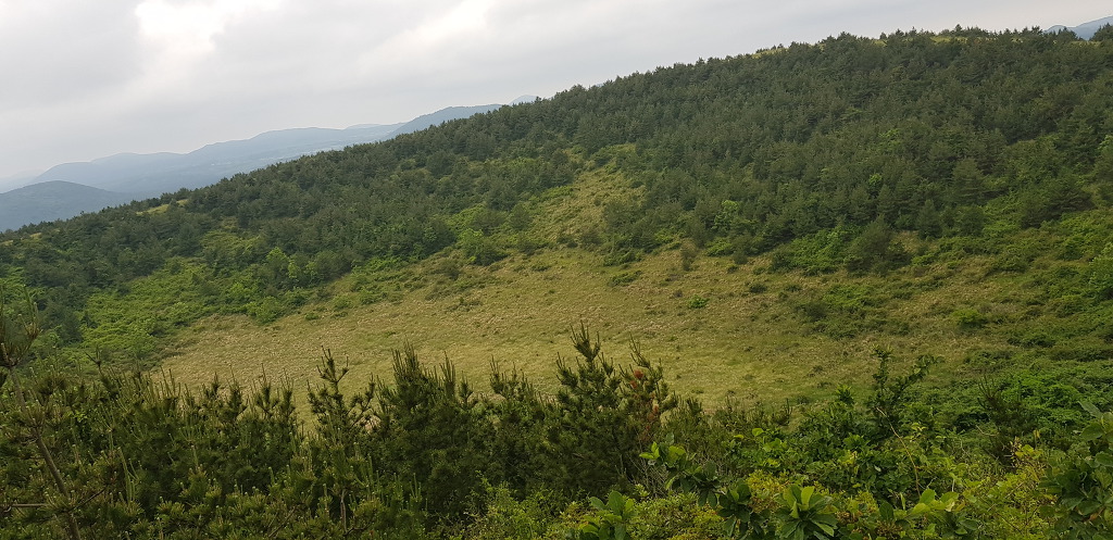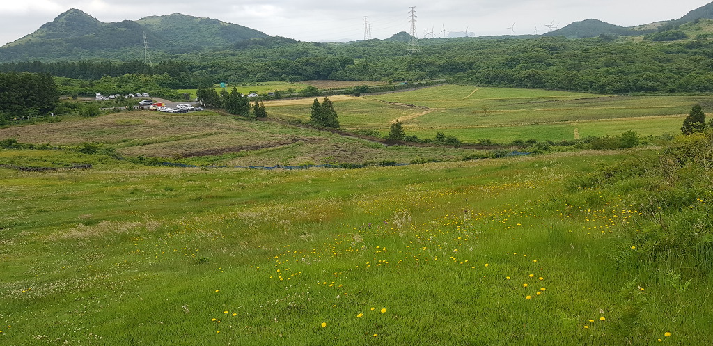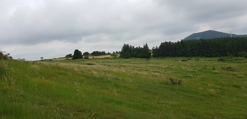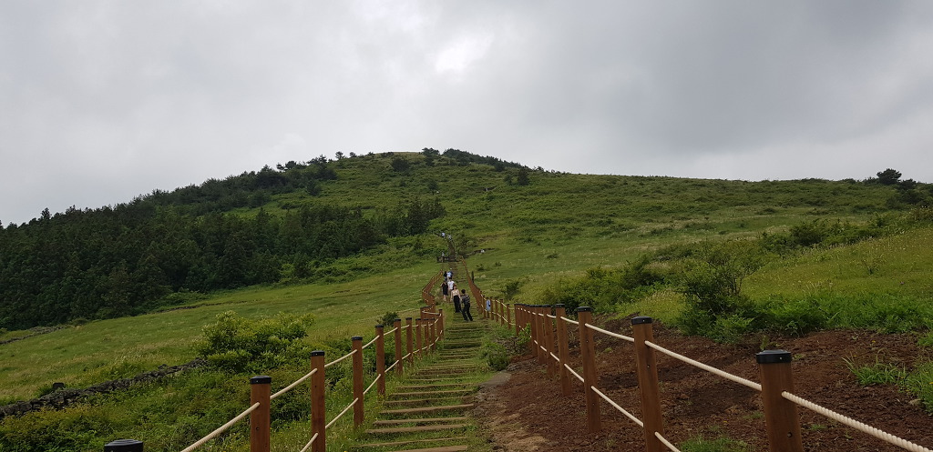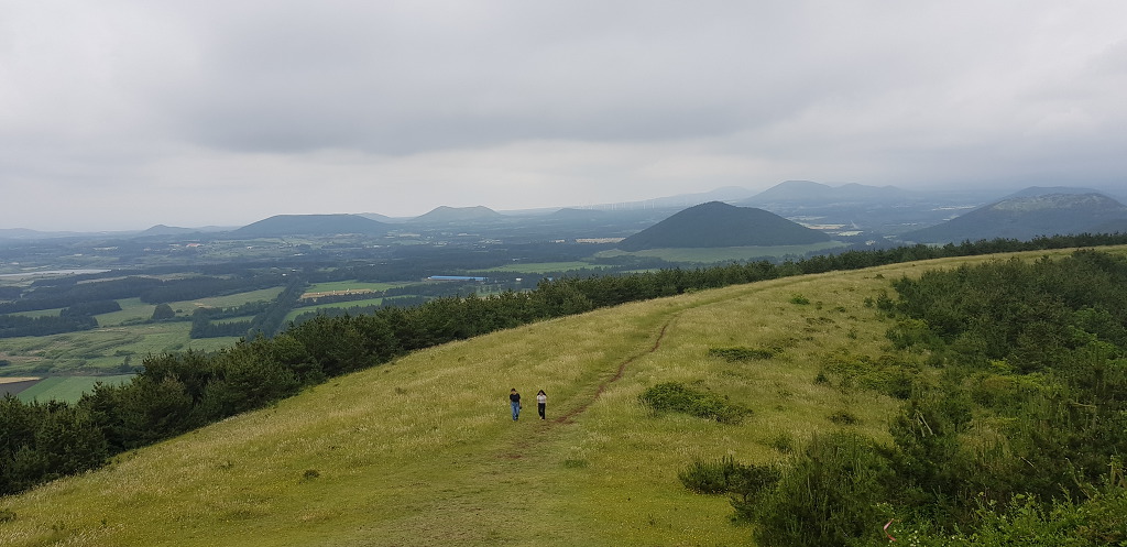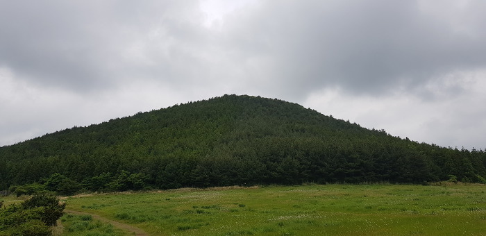 정상 분화구의 등성이는 운동장처럼 넓게 펼쳐져 잔디가 곱게 깔려져있어 아름다음을 자랑하는데 제주 360여개의 오름 중 아름다운 오름중 하나입니다.