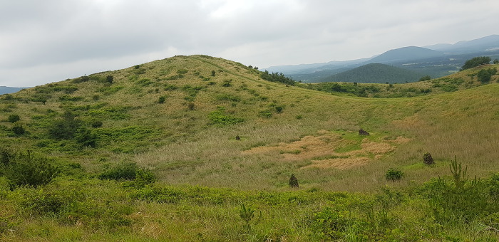 서귀포시 표선면에 있는 따라비 오름은 말굽형태로 터진 3개의 굽부리를 중심에 두고