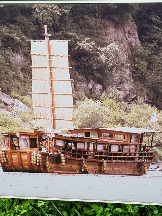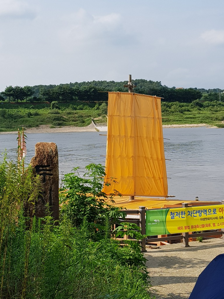 임진강 두지나루 터에서 고령포 여울목 까지 돌아보는 황포돛배를 타니 지는 듯한