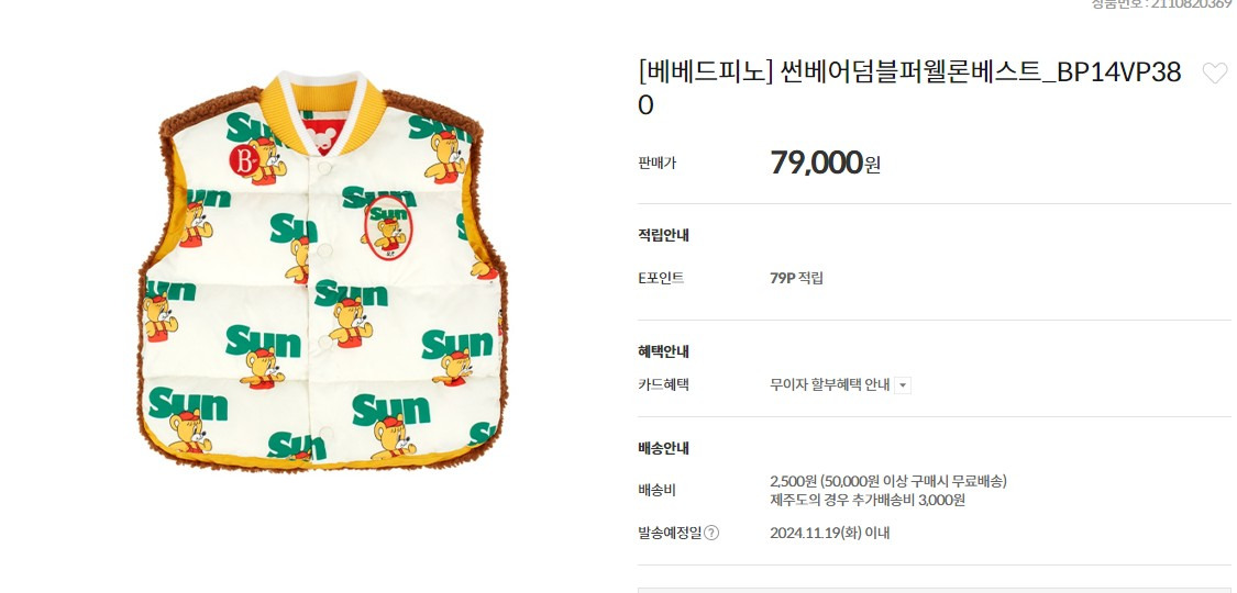 ◆ 4번 ㅡ 베.베.드.피.노 패딩 조끼~