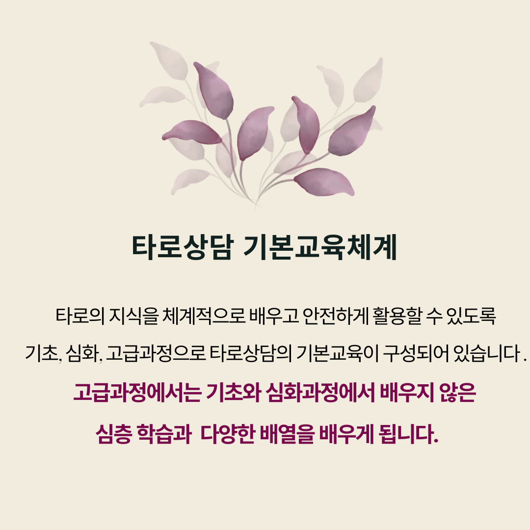 기초, 심화, 고급과정으로 타로상담의 기본교육이 구성되어 있습니다.