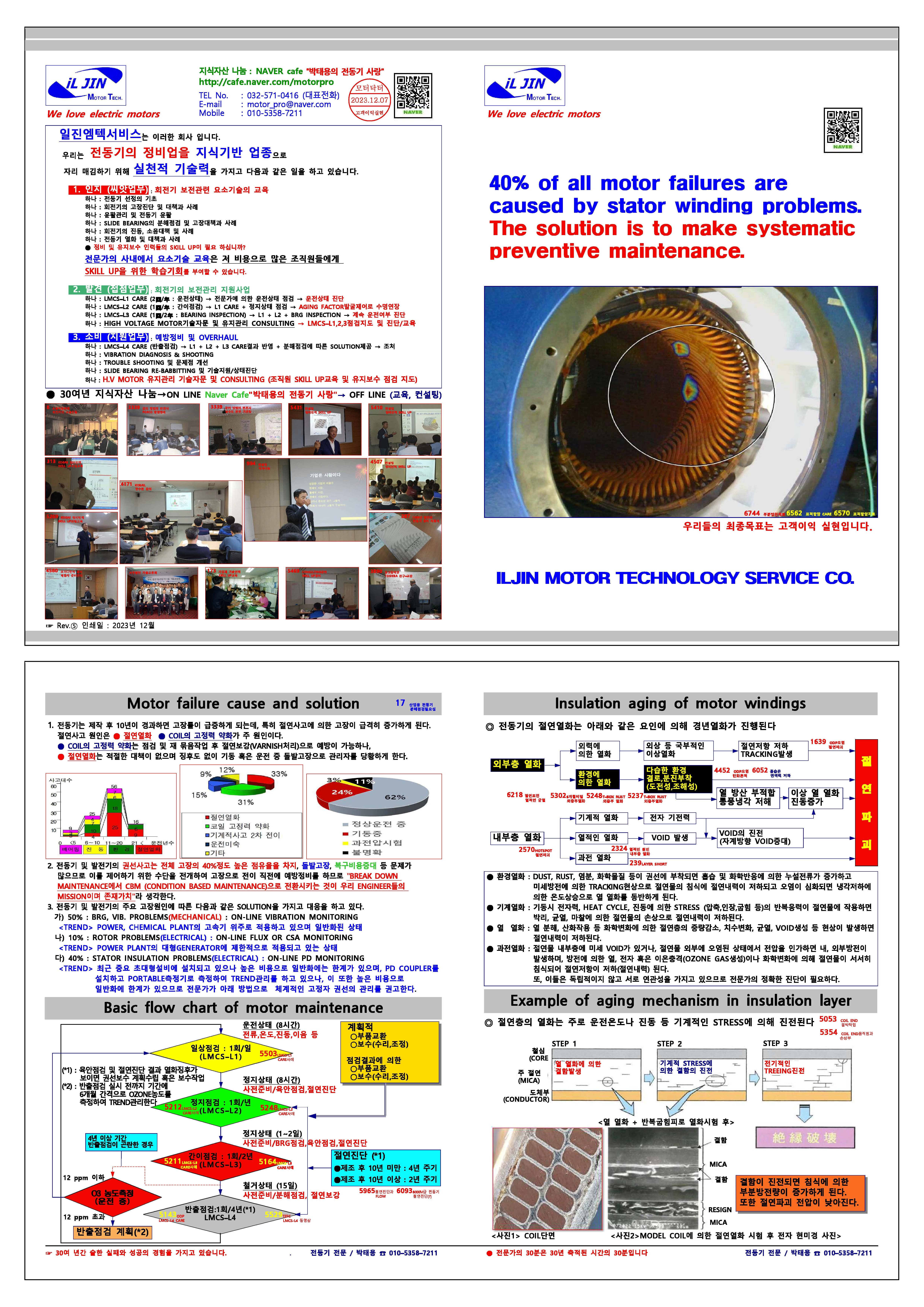 다음은 전동기 고장의 40%에 해당하는 고정자 권선에 대한 사항입니다