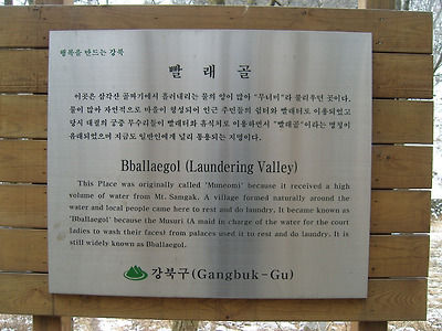 빨래골은 북한산 골짜기에서 흘러 내리는 물의 양이 많아 '무너미'라고 부르던 곳이다.