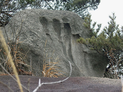 <동장대 직전 성벽 옆의 어깨긁는 주지스님 바위>