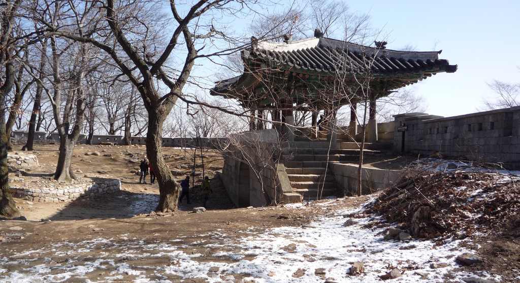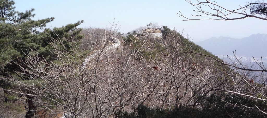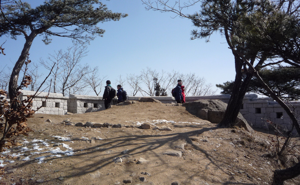 동장대에서 성벽 왼쪽으로 난 길을 따라 6분 정도 진행하면 성벽 복원공사용 울타리가 끝나는 지점에 닿는다.