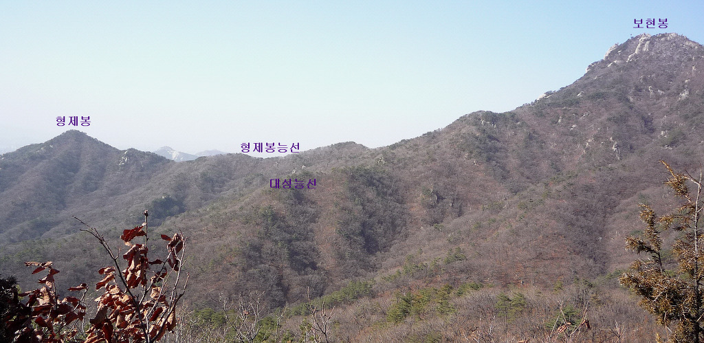 왼쪽으로는 형제봉능선에서부터 보현-문수봉을 지나 칠성봉-남장대지 능선이 다 보이고,