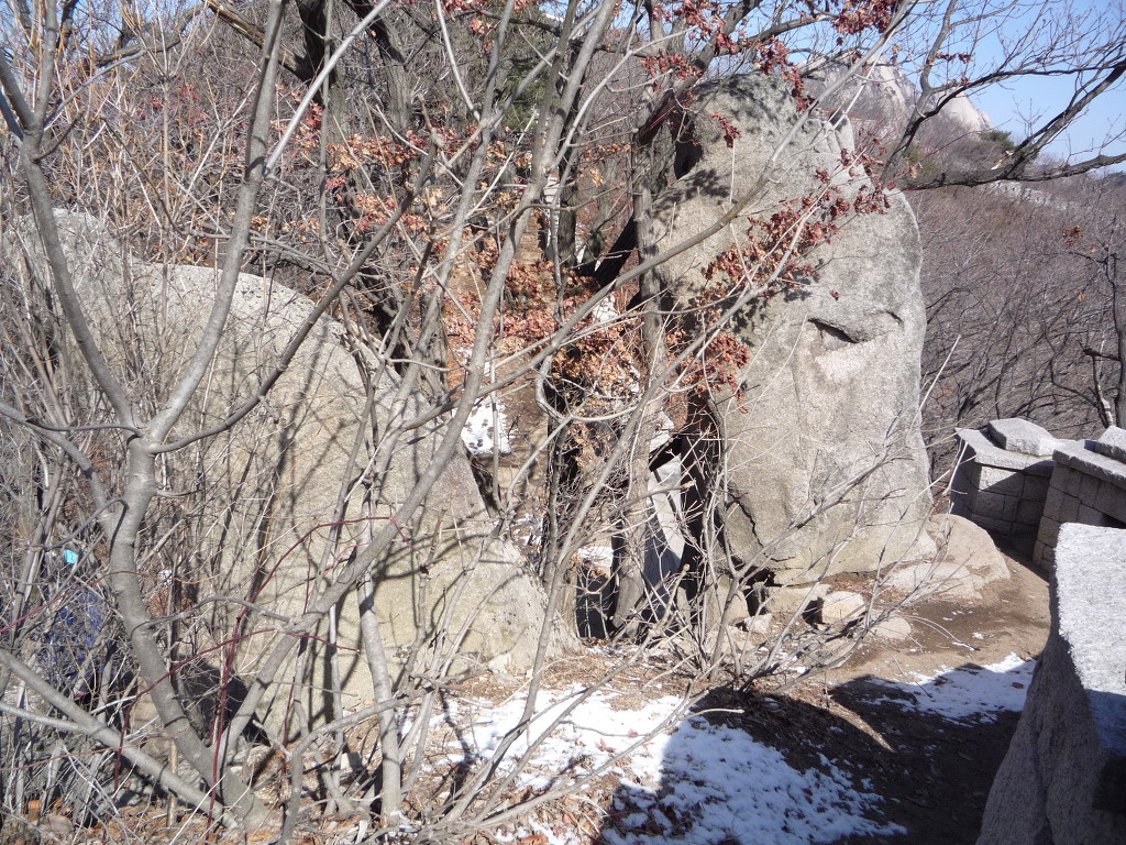 잠시 올라서면 바위지대가 시작되는데, 우측으로 잠시 올라 커다란 두 바위 사이로 올라서서 넘어선다.