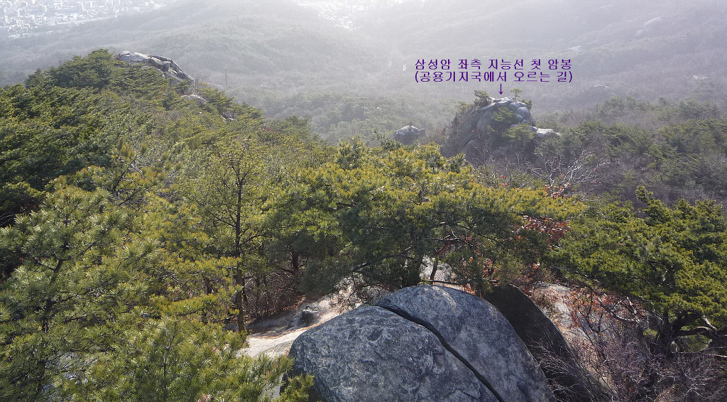 <첫 암봉에서 내려다본 삼성암>