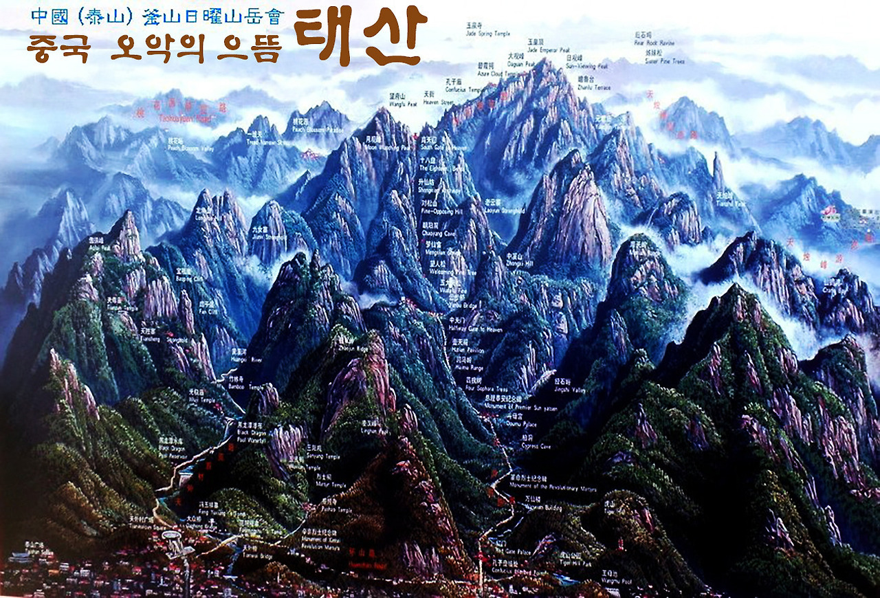 중국의 명산들 중에서 태산의 위상이 제일 높아서 수많은 중국 사람들이 흔히 태산 등정을