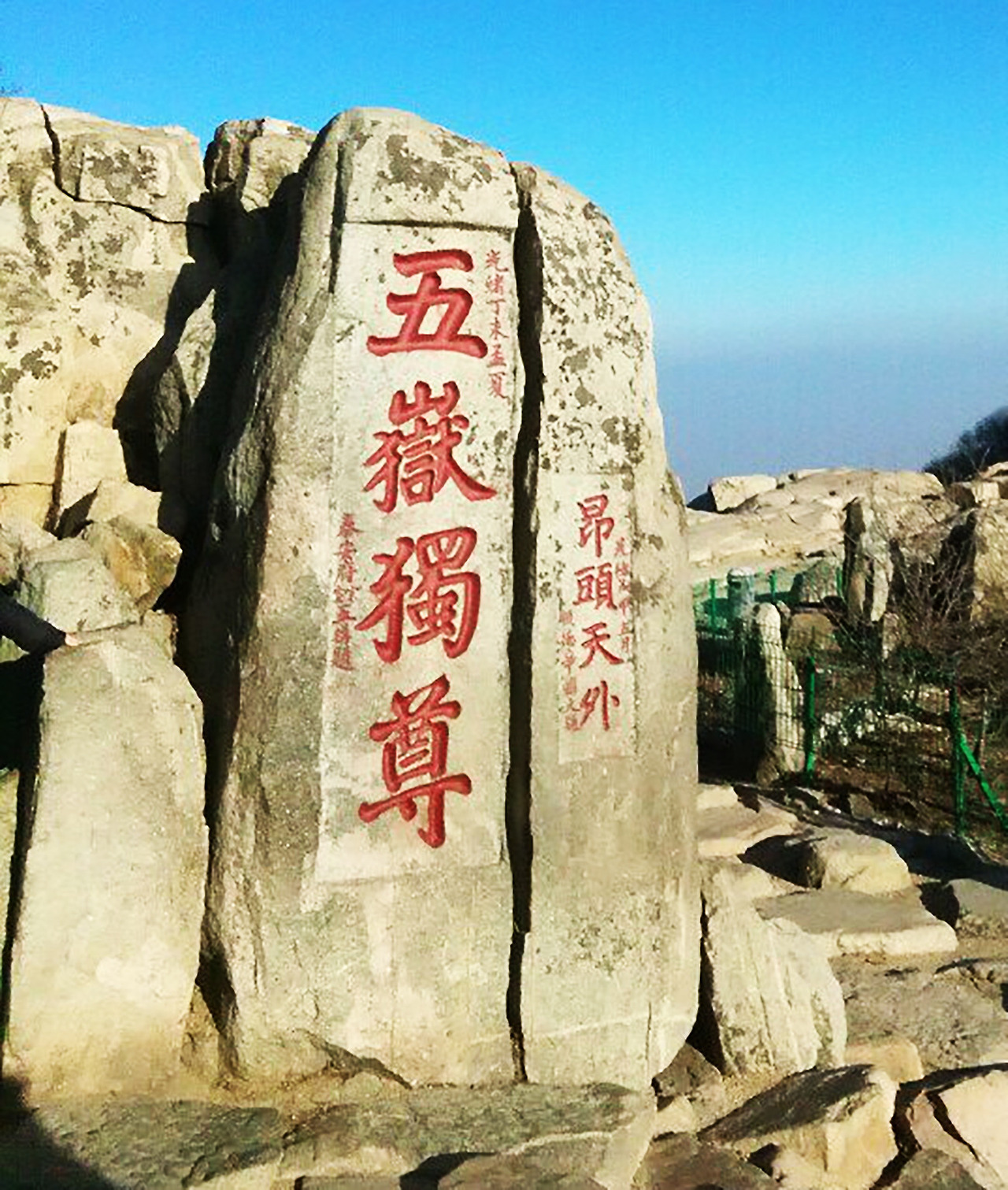 한무제가 2100년 전에 세웠다. 태산의 위대한 풍광에 겸손한 마음으로 아무 것도 적지 못했다는