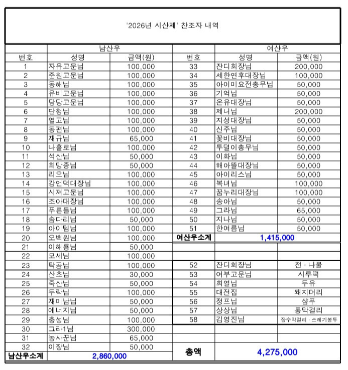 26년 시산제 마무리 잘 하셨네요 수고하셨습니다. -