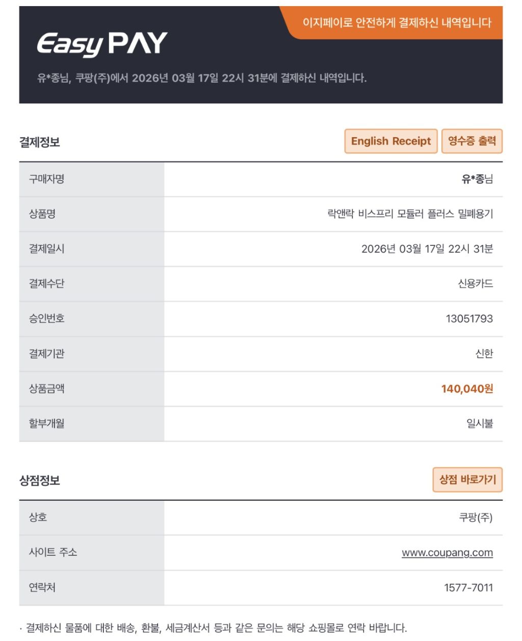 2등상품(락앤락) 140,040원
