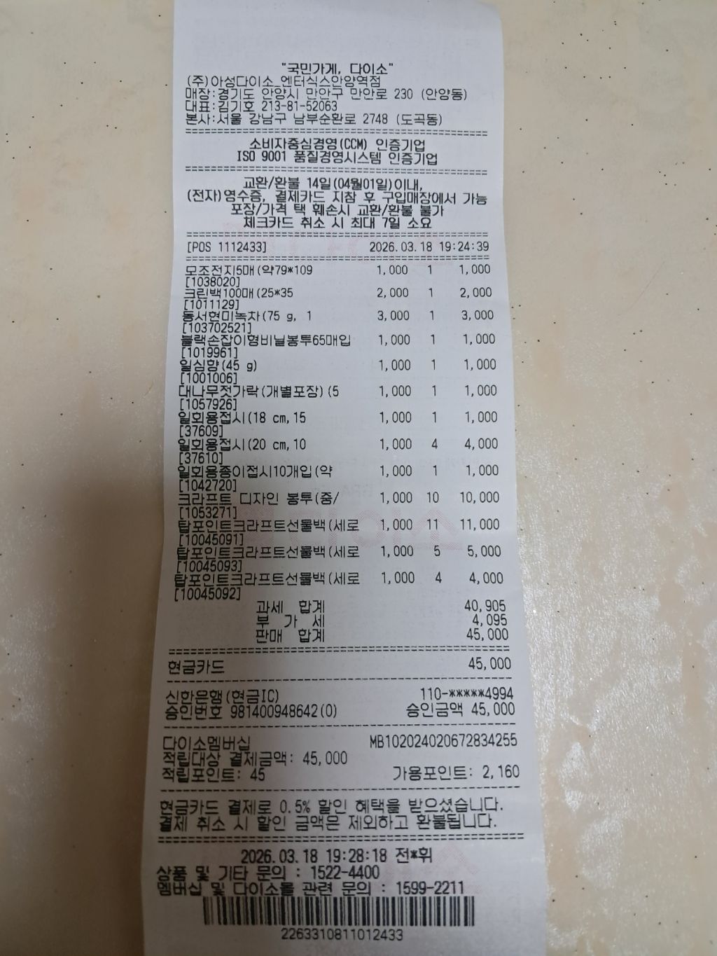 기타물품구입 45,000원