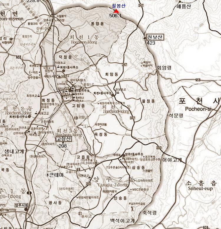 ♣ 칠봉산(506.1m)과 천보산(423m)은 수도권에서 가까운 경기도 양주시 회암동 북동쪽을 에워싸고 있는 산릉이다. 필봉산 북으로는 동두천시 탑동, 천보산 동으로는 포천시 동교동과 경계를 이룬다.