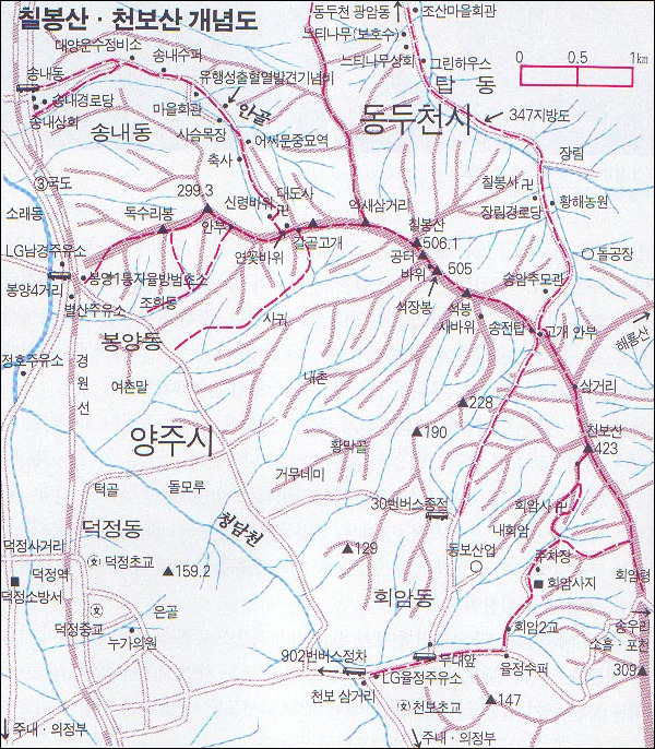 송내동 -대도사 -주능선 -정상 -송전탑 -천보산 -회암사 -회암리 버스정류장
