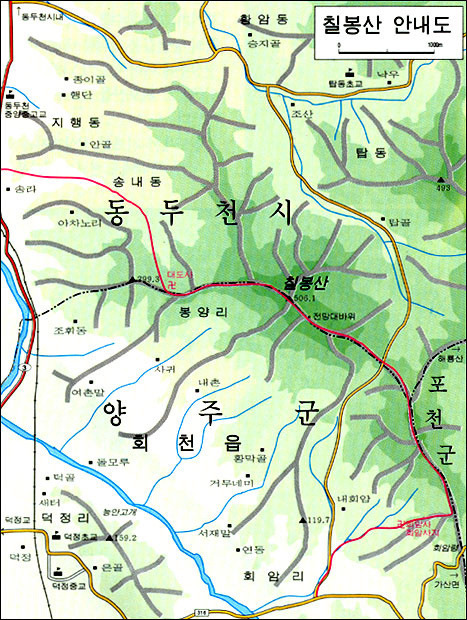 대도사 코스는 봉양사거리에서 북쪽 동두천 방면으로 약 1.5km 거리인 송내동 송내상회가 산행기점이다.