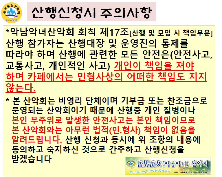 ▶ 준 비 물: 간식, 점심은 산행후 맛집