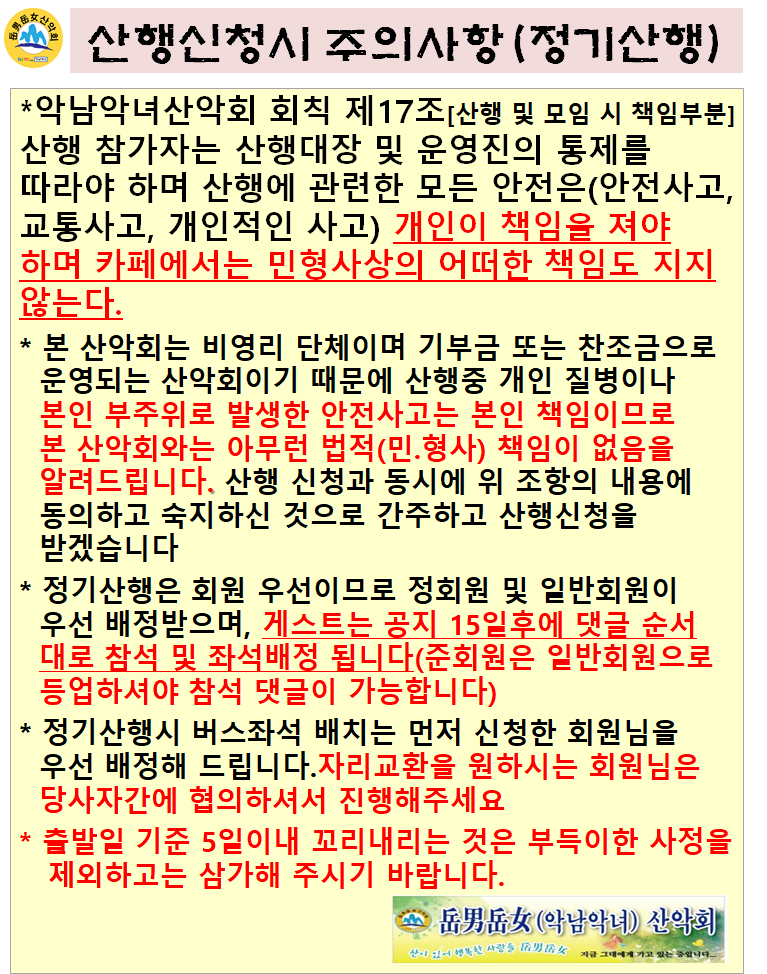 9 산행찬조금 : 55,000원 (부부참석시1만원할인)
