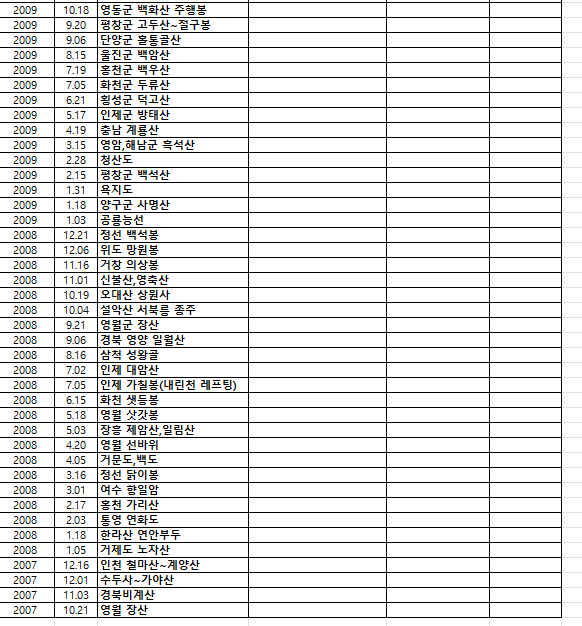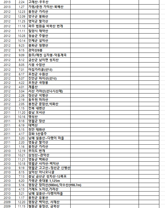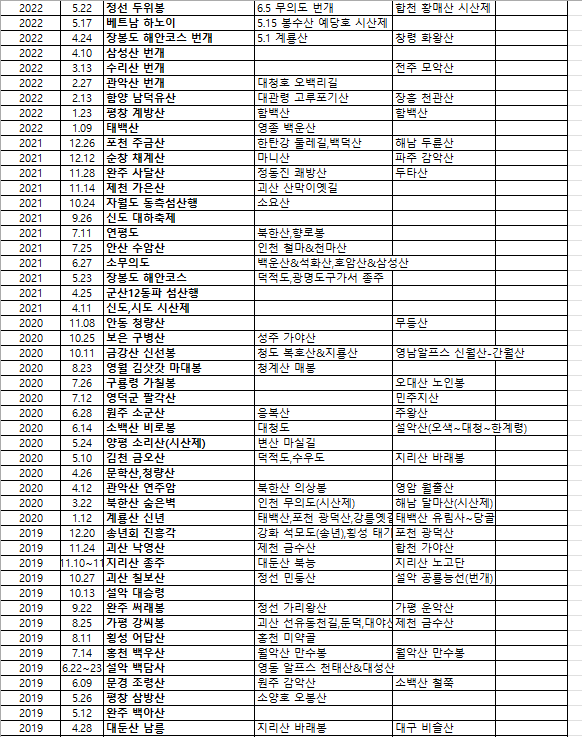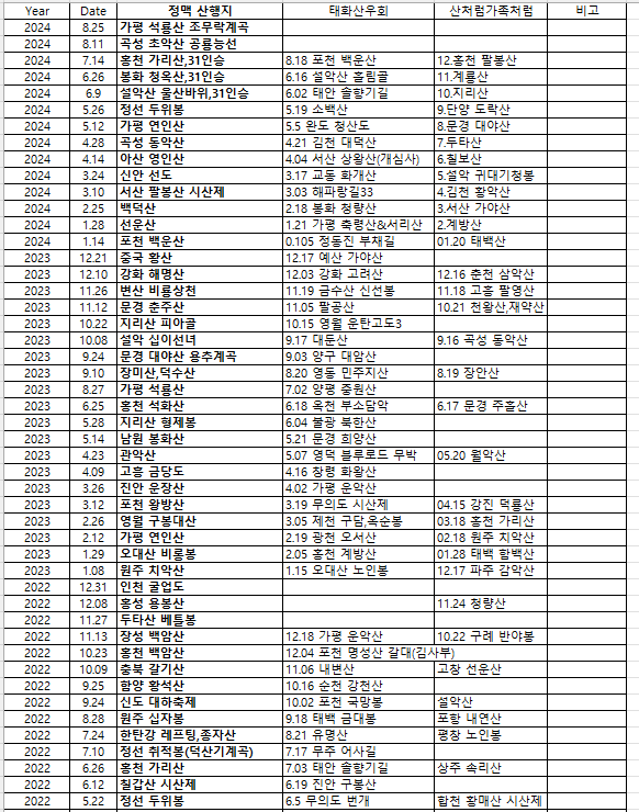 정맥 년도별 산행지들~ 작성자새신발|작성시간24.08.19|조회수196 목록 댓글 4 글자크기 작게가 글자크기 크게가 다음검색 현재 게시글 추가 기능 열기 북마크 신고 센터로 신고 댓글 댓글 4 댓글쓰기 답글쓰기 댓글 리스트 작성자우포 | 작성시간 24.08.19 총무님 수고했어요 작성자#사니조아 | 작성시간 24.08.19 와우~~! 대단한걸 정리 하셨네요.. 작성자새신발 작성자 본인 여부 작성자 | 작성시간 24.08.20 칭찬 감사합니다.~~ 산행지 선택에 참고가 되었으면 좋겠네요. 작성자미소담ㆍ | 작성시간 24.08.21 새신발님 너무 좋아요 참 많은 산을 다녔네요. 댓글 전체보기