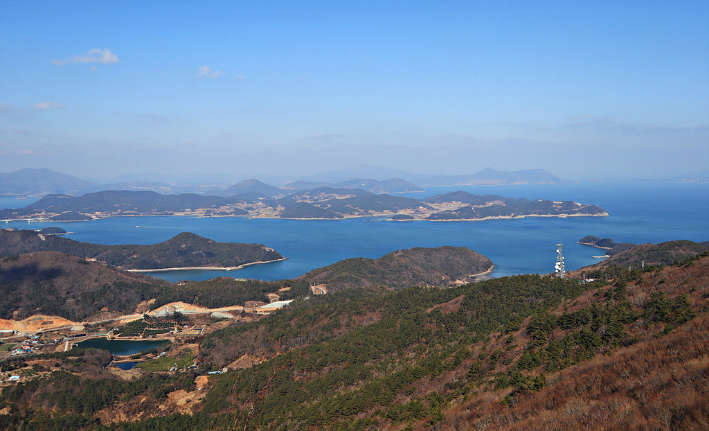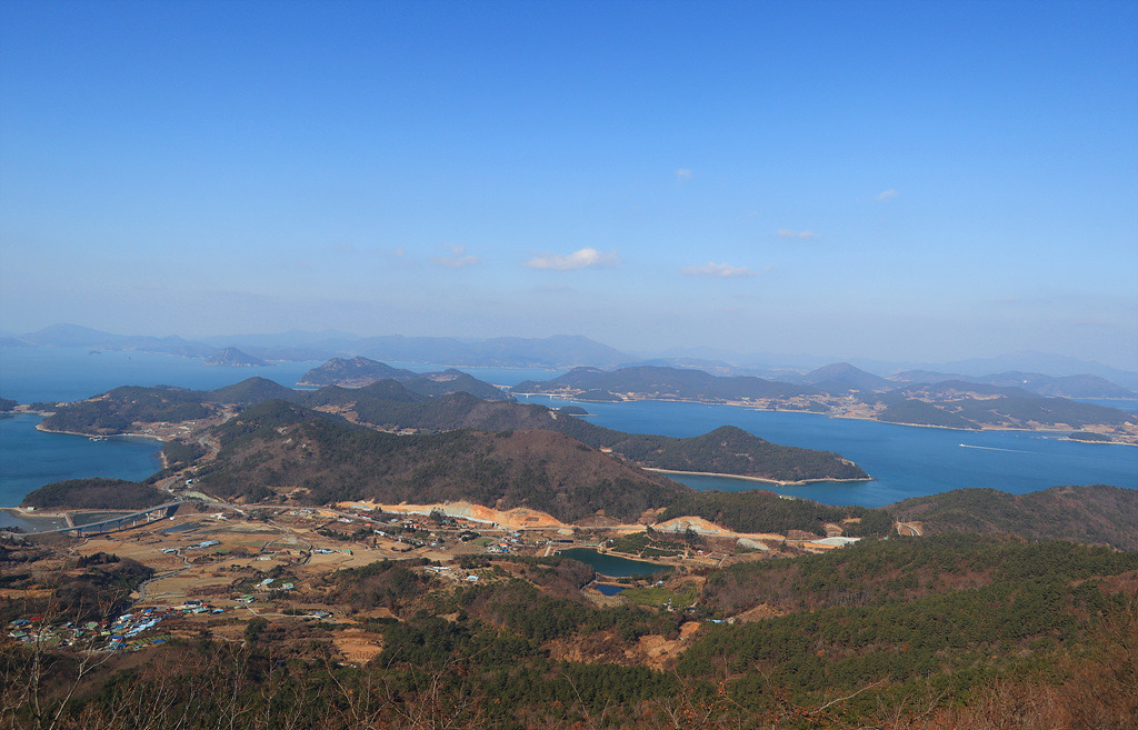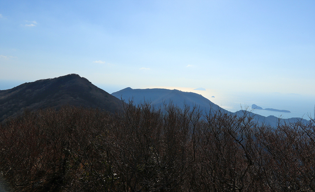 외나로도의 한가운데에 높이 410m의 봉래산이 솟아있다. 우주센터의 입구 예당마을에서 비포장길을 따라 10여 분 차로 오르니 봉래산 넓은 자락이 품은 거대한 푸른 숲이 시선을 빼앗는다. 일제 때 시험림으로 조성됐다는 봉래산 삼나무숲이다. 삼나무와 편백이 함께 자라는 숲의 나이가 80여년. 둥치가 한아름 이상씩 자란 3만 여 그루 나무들이 빽빽하게 들어찬 숲의 모습이 마치 사진에서 본 알프스에 온 듯 이국적이다. 길쭉한 이등변 삼각형들이 겹쳐서 그려낸 초록의 물결이 멋진 디자인 작품을 보는 듯 매혹적이다. 오솔길을 따라 숲으로 발걸음을 옮기면 바늘 같이 가느다란 파란 잎들 사이로 겨울을 보내는 봄볕이 부서져 내린다. 빛의 일렁임에 몸과 마음이 금세 나른해진다. 가는 낙엽들이 쌓인 푹신한 흙길이 아늑하고 거칠 것 없이 하늘로 쭉쭉 뻗은 둥치들 사이로 걷는 걸음이 마냥 흥겹다. 무성한 숲이지만 숲속 산책로를 다 걸어 나오는데 채 10여분도 걸리지 않는다. 아쉬움을 뒤로하고 환한 숲 밖으로 나서니 시야가 뻥 뚫리면서 억새 너머로 시퍼런 바다가 눈에 들어온다. 하늘과 바다가 한 빛이다. 억새 밭 한가운데 덩그러니 들어선 외딴 집 한 채가 풍경을 더욱 빛내고 있다. 집 뒤로 난 오솔길을 따라 1km 가량 오르면 통신중계소가 나타나고 그 뒷길로 50분 가량 오르면 봉래산 정상이다. 섬을 두른 사면의 바다가 내려다 보이고 고흥 앞바다가 품은 21개의 크고 작은 섬이 발아래서 물결 친다. 날씨가 좋으면 제주의 한라산도 육안으로 들어오는 남해의 전망대다.