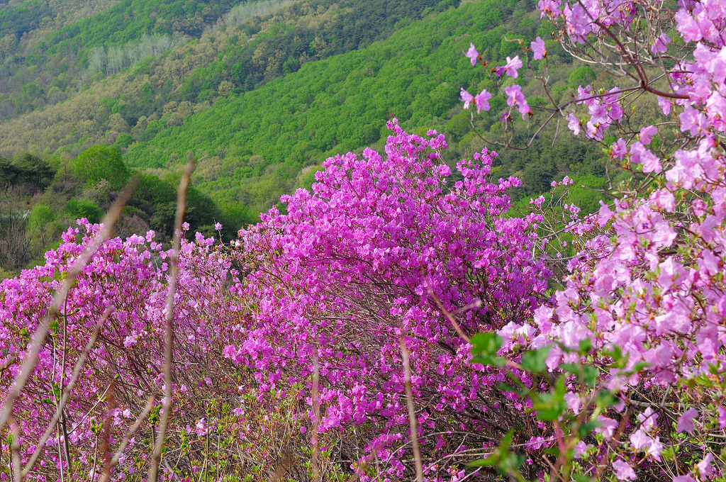 유난히 추웠던 지난 겨울을 견디고 진달래가 고려산 천지를 진분홍빛으로 수놓았습니다.