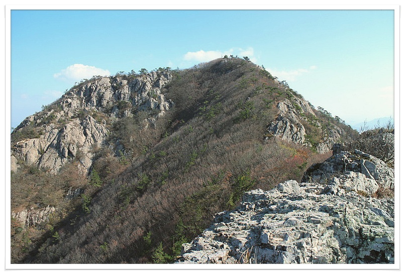 암릉지대까지 능선길과 바위지대가 번갈아 펼쳐진다. 능선을 따라 10여분 정도 고도를 올리면 한순간
