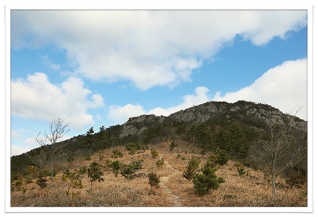 정상부가 바위벼랑을 이루고 있어  멀리서도 눈에 잘 띄어 이정표 역할을 톡톡히 한다.
