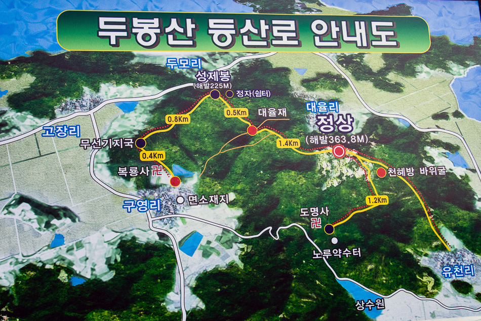 이뤄져 뱃사람들이 두봉산을 곧잘 이정표로 삼았다고 한다. 산행 코스는 세 개로 나뉜다. 구영리