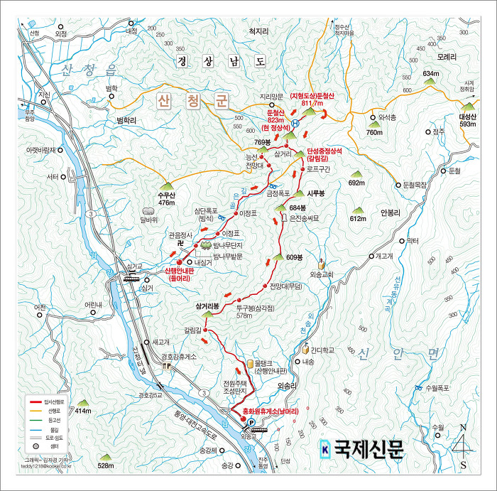 산행코스 : 심거마을 - 내심거마을 - 금정폭포 - 둔철산 - 시루봉