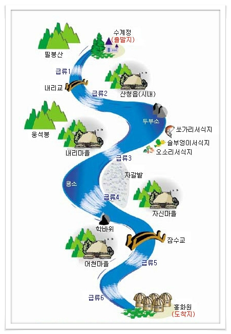 | 1코스 (경호1교~자신) | 9km | 2시간 | 30,000 | 물의수량에따라 조정됨 |