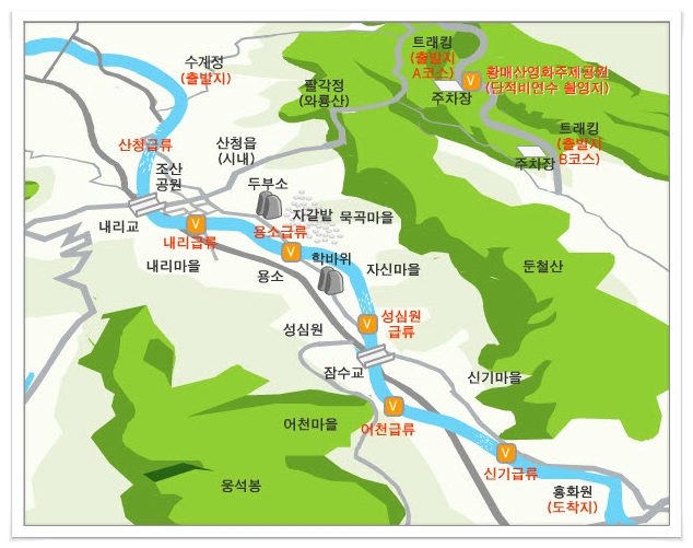 ** 경호강 래프팅, 수계정~ 홍화원까지 전체 15km 코스 **