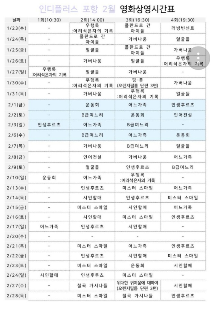 영화상영 안내 (1/23~2/28)