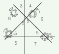 배달국에서는 숫자로서 산목(算木)이 통용되었고 14세 자오지 환웅천황 때는 화서(花書: 佃目)가 만들어져 사용되었다(바로 아래 그림).