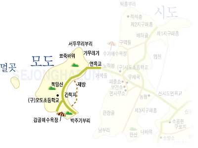 영종도 삼목선착장에서 배로 10분이면 신도에 도착하고 시도와 모도가 연도교로 연결되어 있어
