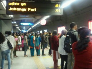 *메트로 기다리는중. 저기 여자들만 쭈욱 서 있는 곳 위에 동그라미 보이는가? 저칸이 여성전용칸임. 나 같은 여자승객에게 아주 유용하고 좋았으나 난 저기에서도 성추행을 당하는 경험을 함. ㅋㅋㅋㅋㅋ 여성칸과 남자칸 사이에서 커플들이 아주 애절하게 손을 만지작 거리는 광경을 많이 목격 할 수 있음. 원래 사진 찍음 안되는데 찍다가 걸려서 혼남..-_-*