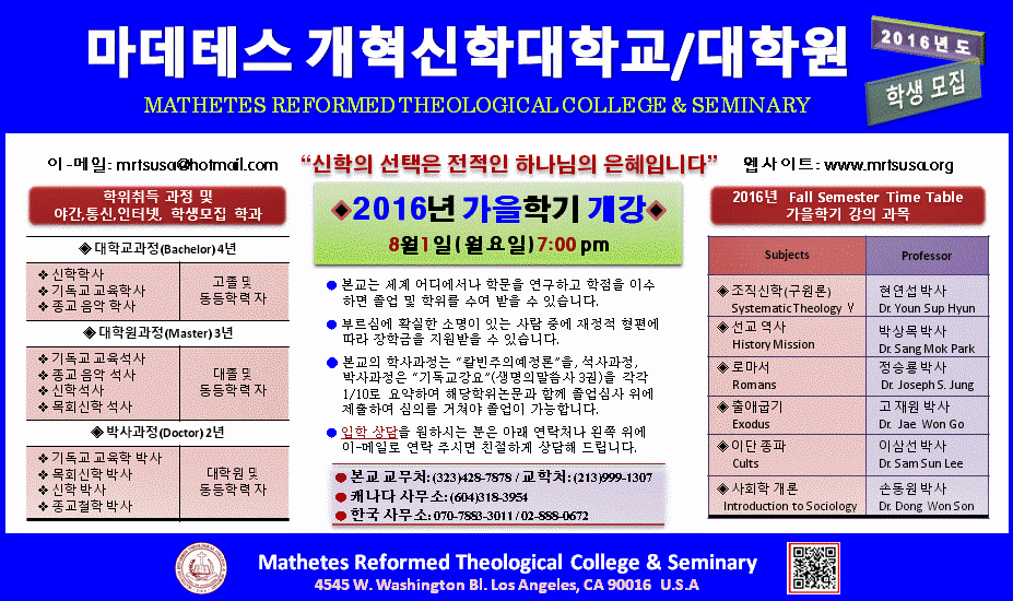 2016년 가을학기 개강 신문광고 작성자마데테스|작성시간16.07.16|조회수39 목록 댓글 0 글자크기 작게가 글자크기 크게가 2016년 가을학기 학생모집 마데테스 개혁신학대학교 / 대학원http://mrtsusa.org/bbs/board.php?bo_table=f03&wr_id=41 다음검색 현재 게시글 추가 기능 열기 북마크 공유하기 신고 센터로 신고 댓글 댓글 0 댓글쓰기 답글쓰기 댓글 리스트