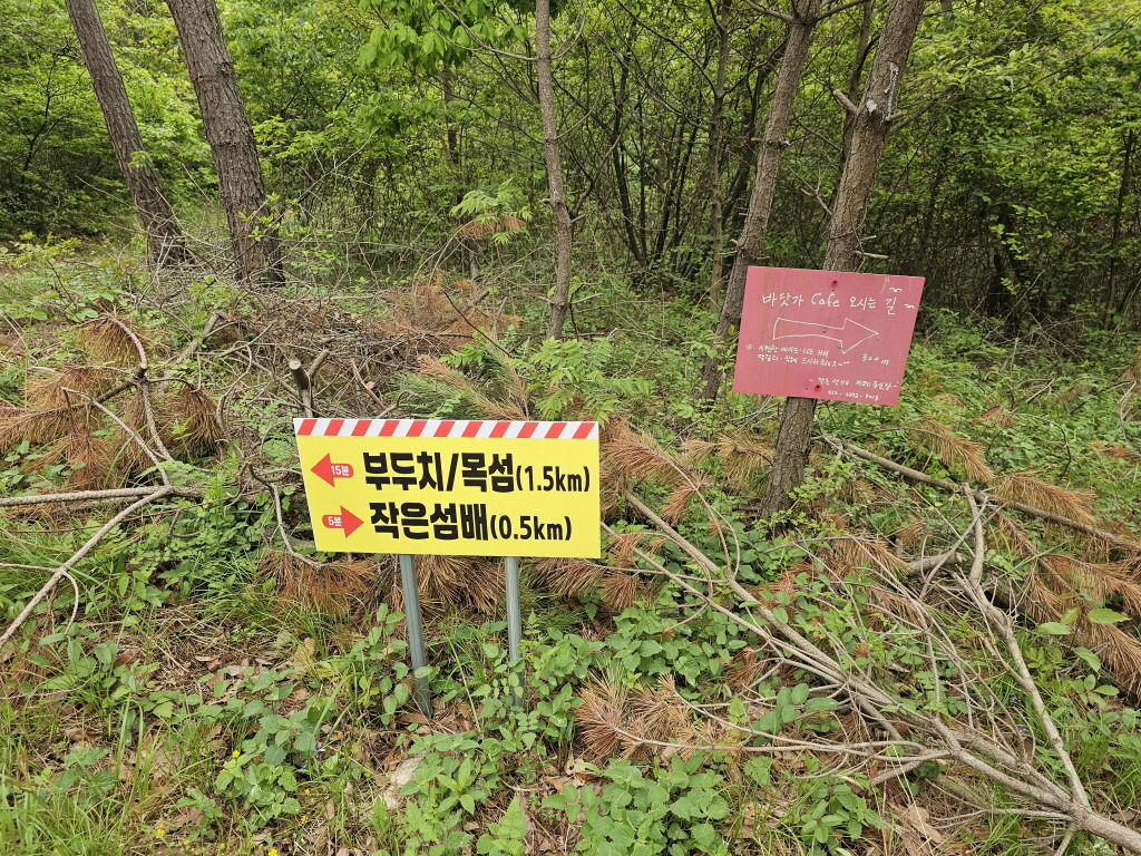 12:38 부두치/목섬 1.5km, 작은섬배 0.5km 지점 이정표